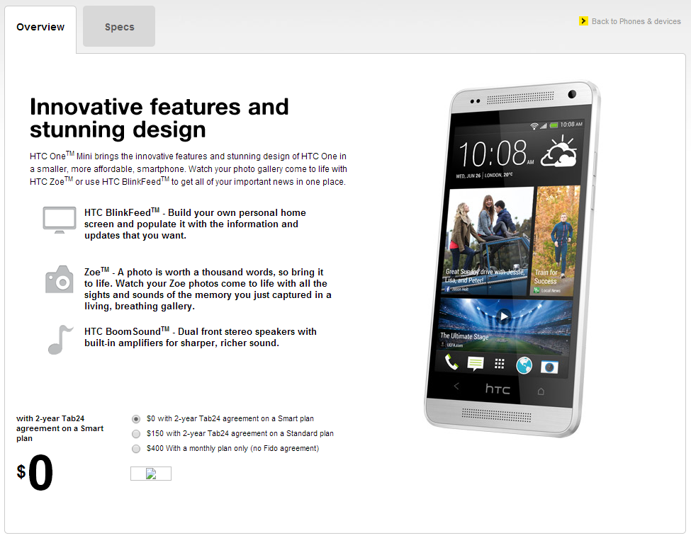 HTC One Mini Now Available With Fido