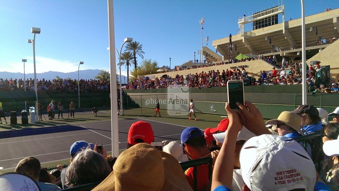 Looks like someone’s testing out the new camera on the All New HTC One. In the photo above, you’ll see a man snapping a pic at a tennis match using, what’s that? the All New HTC One?