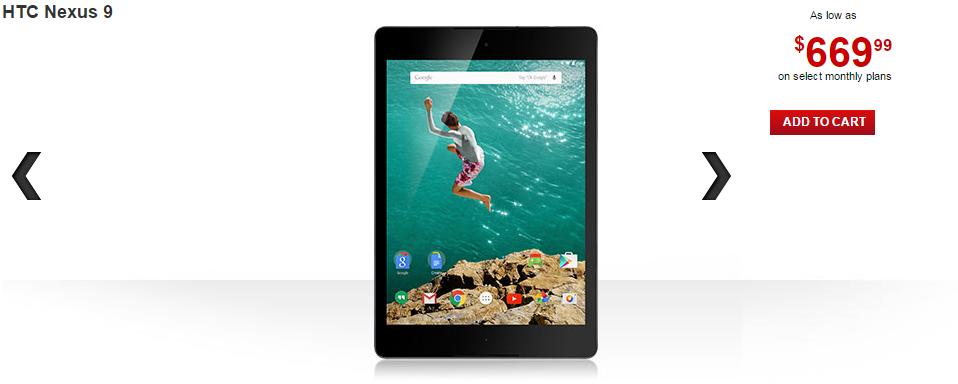 As previously reported, the Nexus 9 LTE will cost $669.99 which is basically the same price the tablet is on the Play Store.