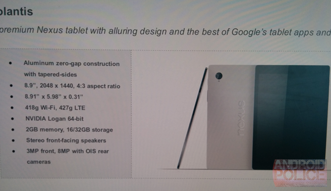 In addition to these specs and the image, Android Police also got a hold on some tentative pricing. The new Nexus tablet will allegedly start at $399 for the 16GB model, $499 for a 32GB model and over $600 for an LTE equipped device. Those prices sure don’t sound very Nexus-esque but that can always change.
