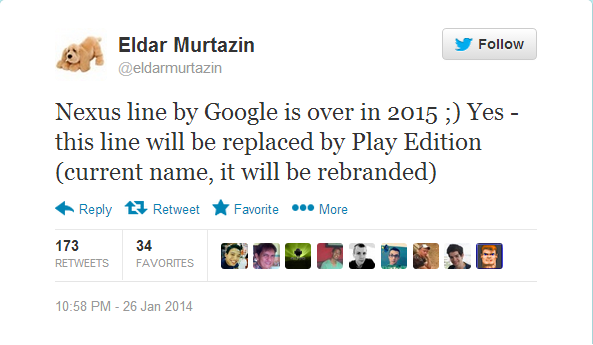 Well this is a rather intriguing story.  Well known leakster (and general techie) Eldar Murtazin tweeted a couple of days ago that Google will be axing the Nexus line in 2024.  According to him, Google has opted to focus their attention on the ever growing Google Play Edition line up rather than put energy into creating a flagship device each year.